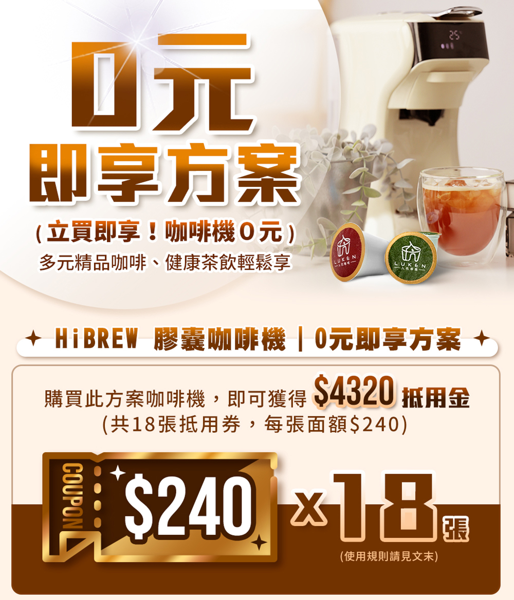 此為【0元即享方案】,購機即送$4,320(咖啡、茶膠囊/易理包抵用金),詳文請見下方圖示