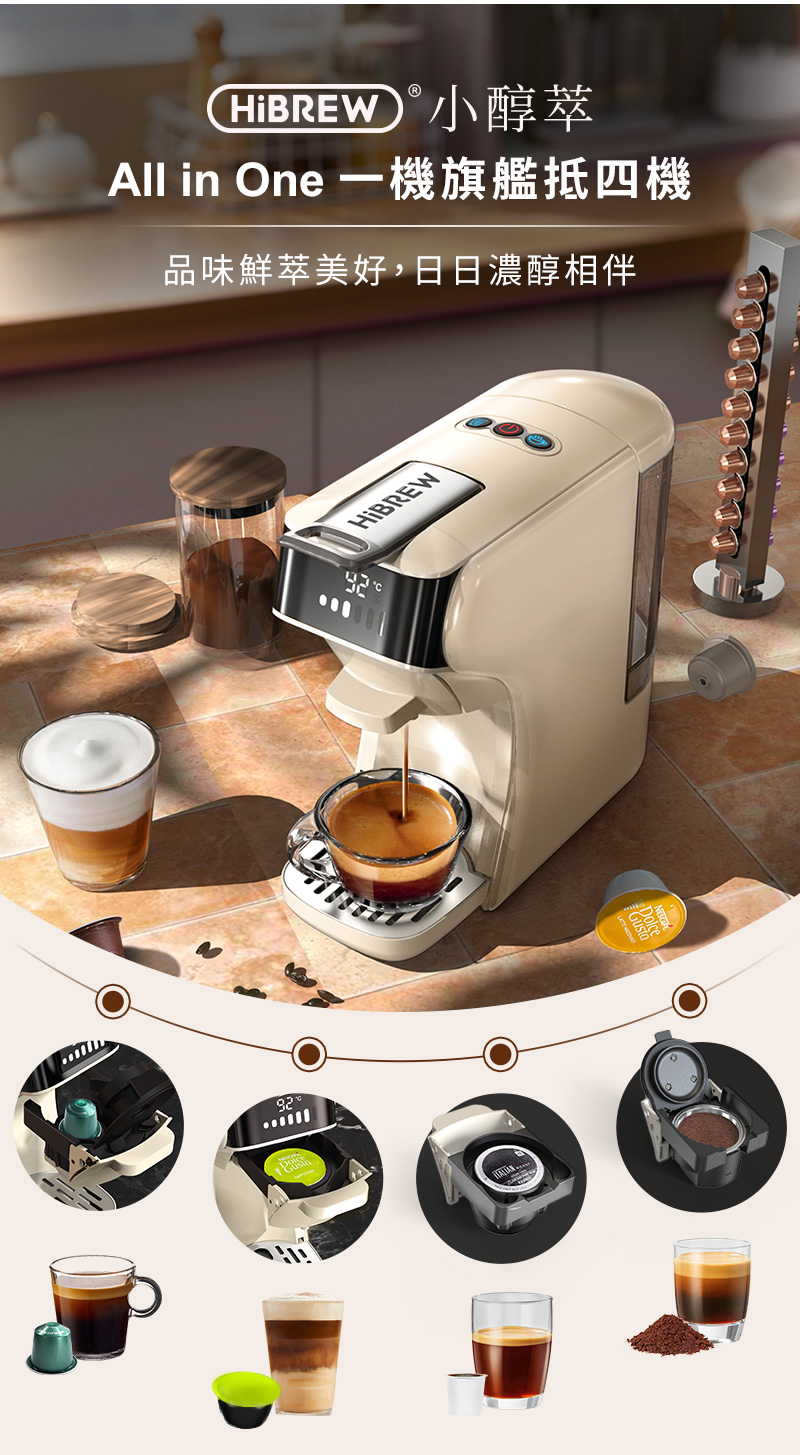 美國咖啡機品牌 HiBREW,專門設計製造義式及膠囊咖啡機,熱銷美國、歐洲、中東等 10 多國家,全球銷售突破 100 萬台,榮獲國際多項專利認證!#